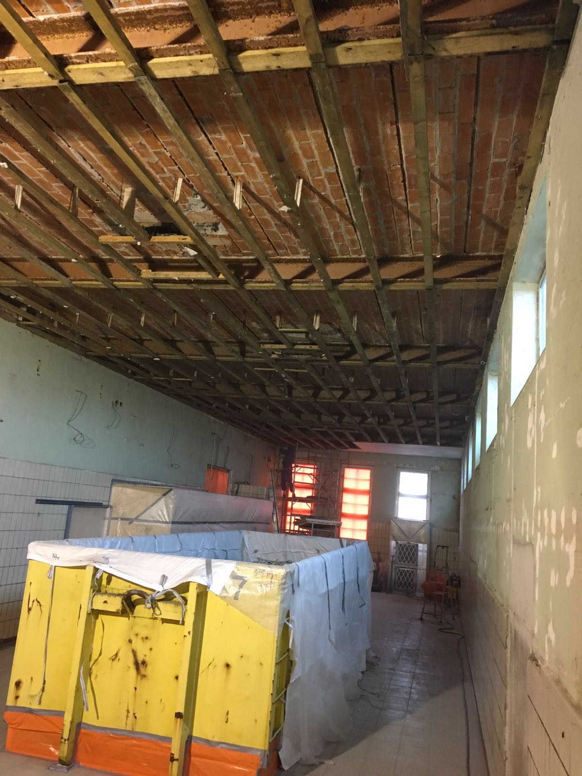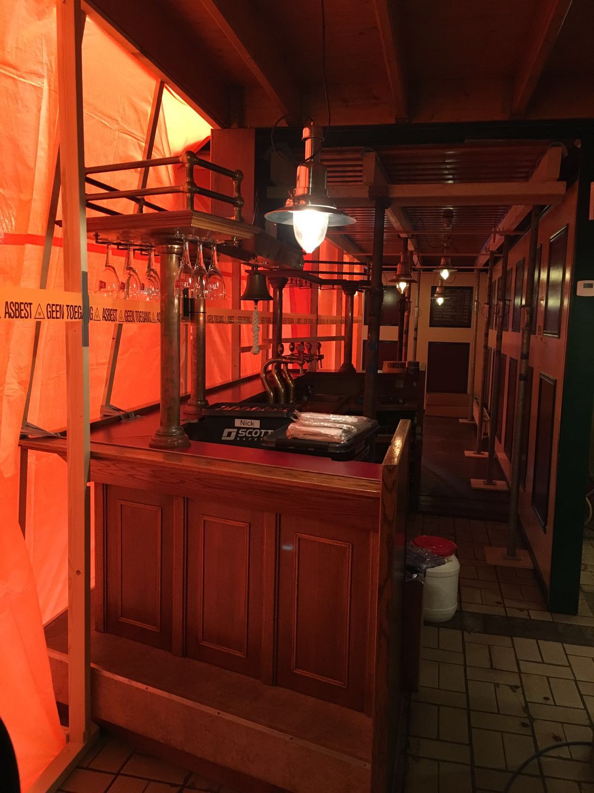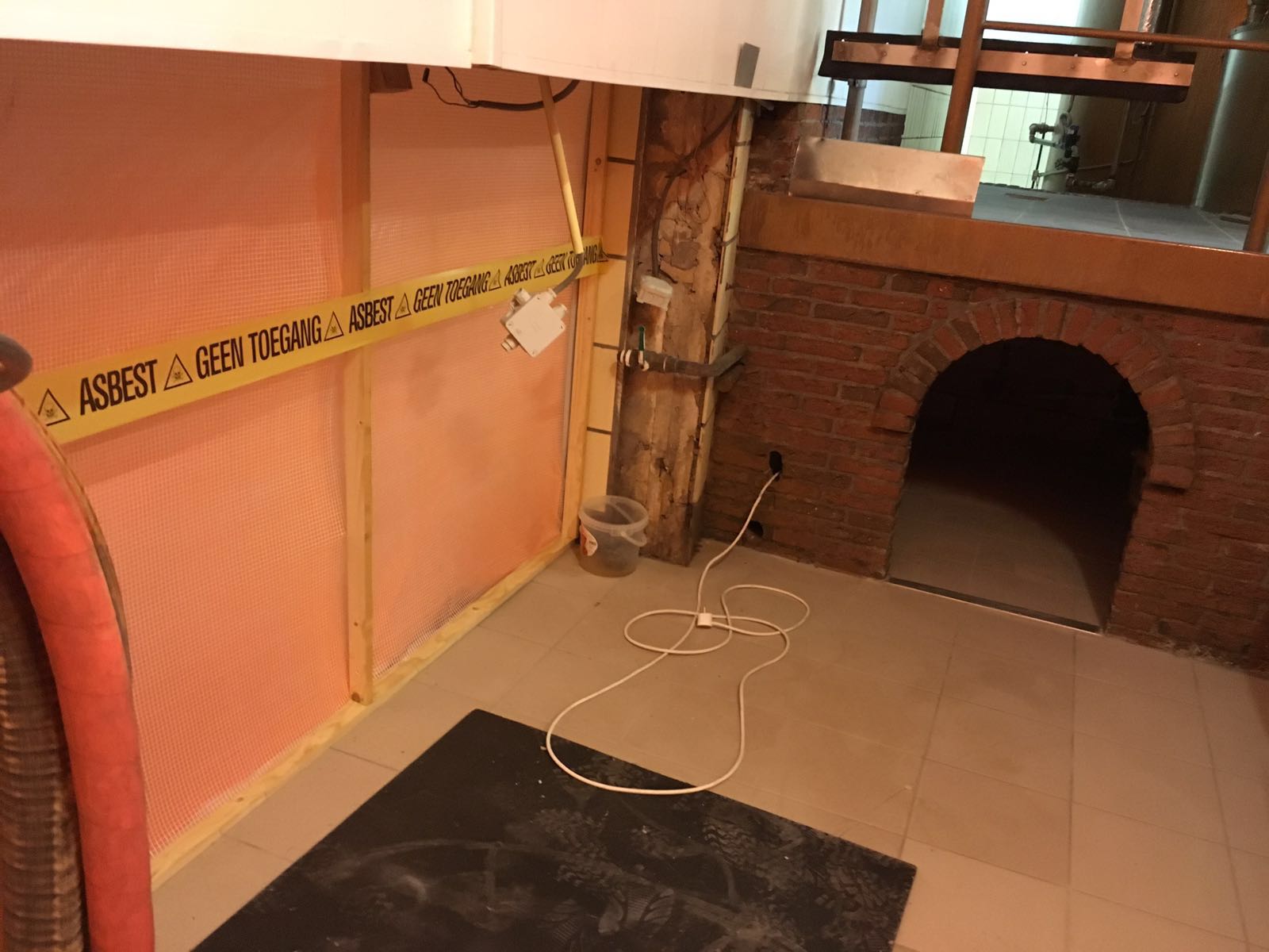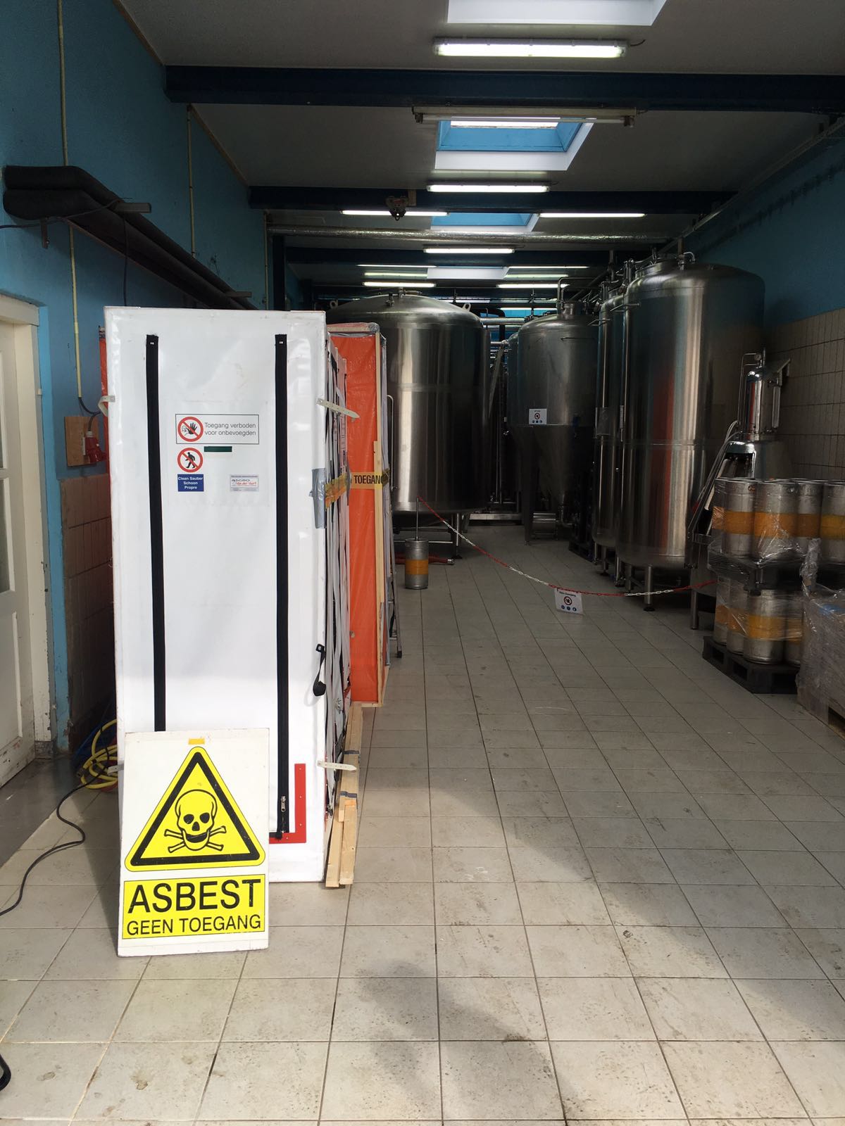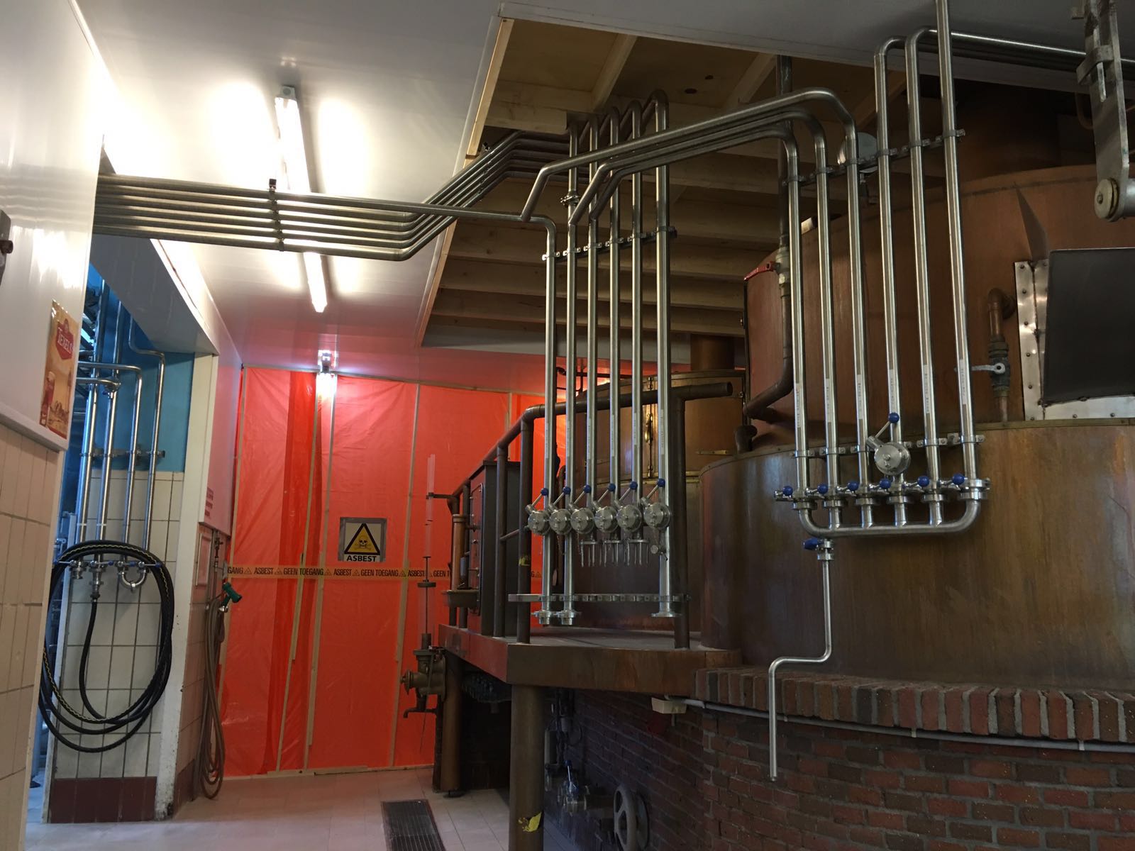 In goed overleg met de brouwerij is er circa 2000 m2 asbesthoudend plafond plaatmateriaal verwijdert.