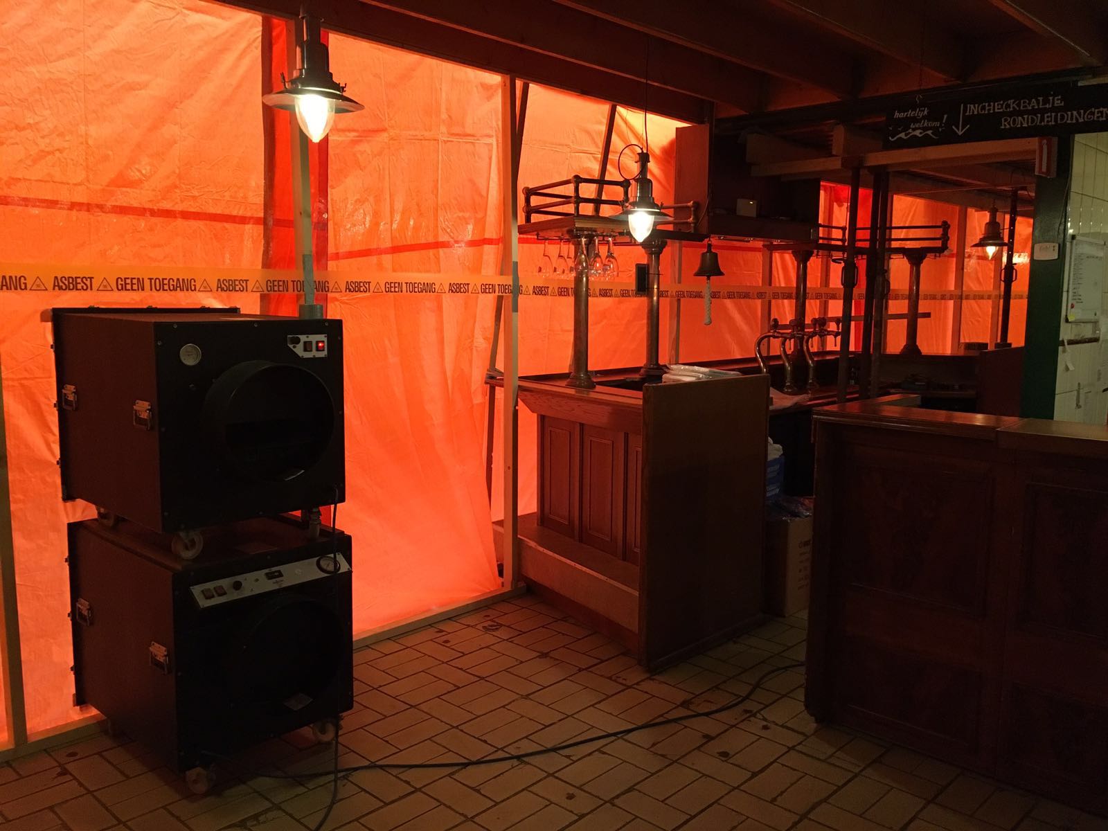 Op het mooie eiland hebben wij In goed overleg met de eigenaar de gehele bierbrouwerij  gesaneerd. Circa 2000m2 niet-hecht gebonden plafondplaat materiaal is verwijderd met waarborg van de continuïteit van het brouwproces. Dit is was niet altijd eenvoudig maar wel een mooie uitdaging.