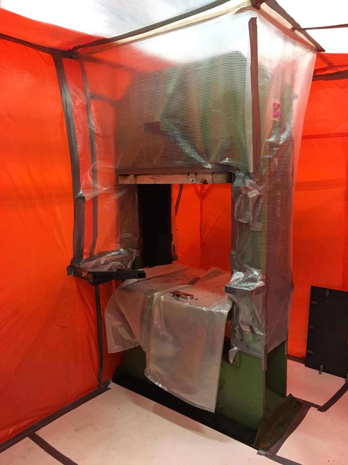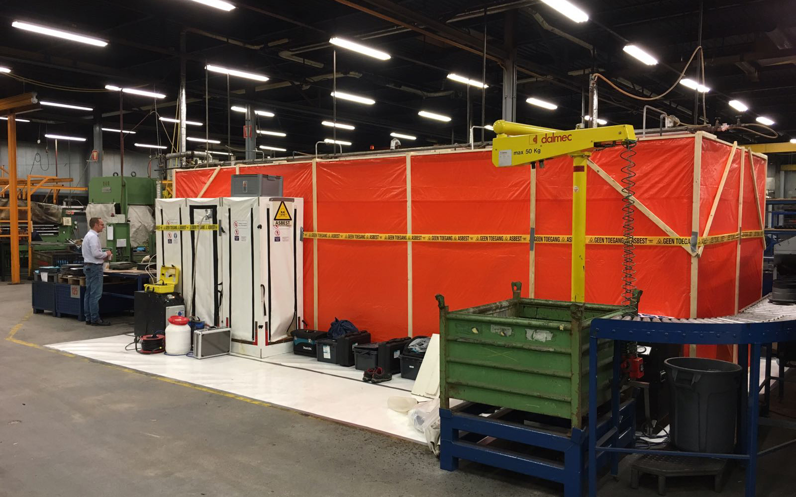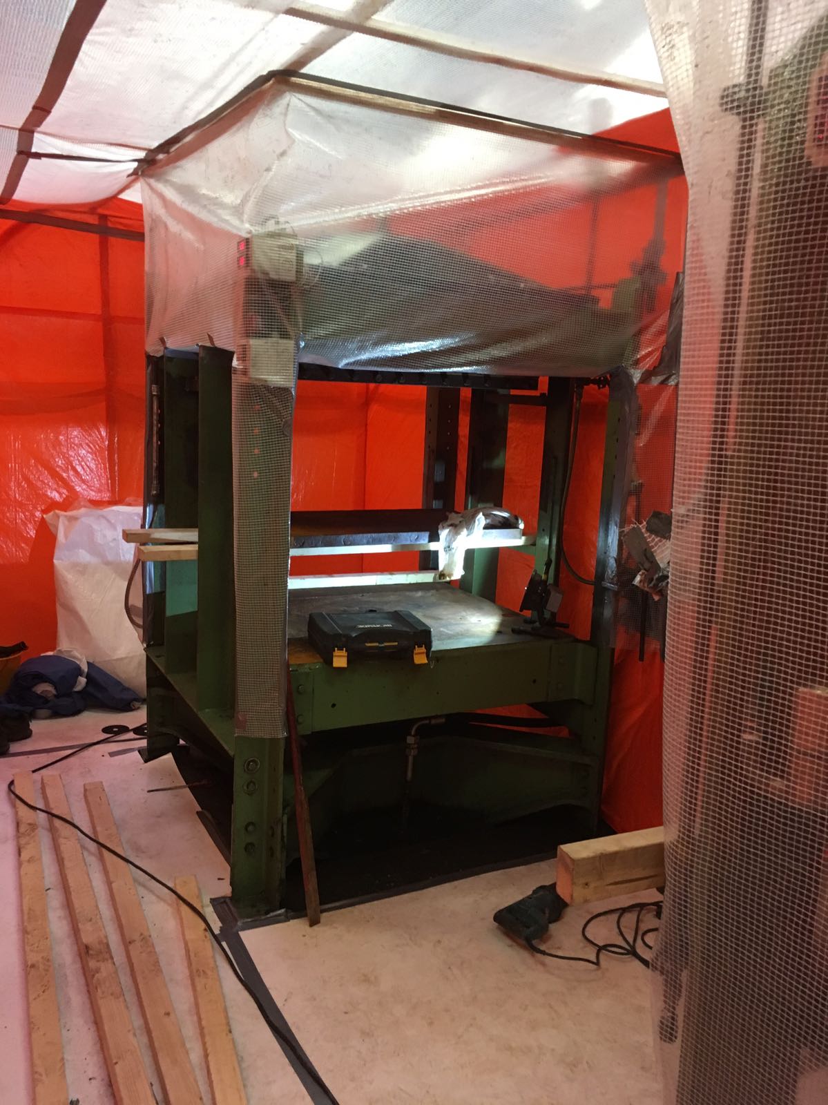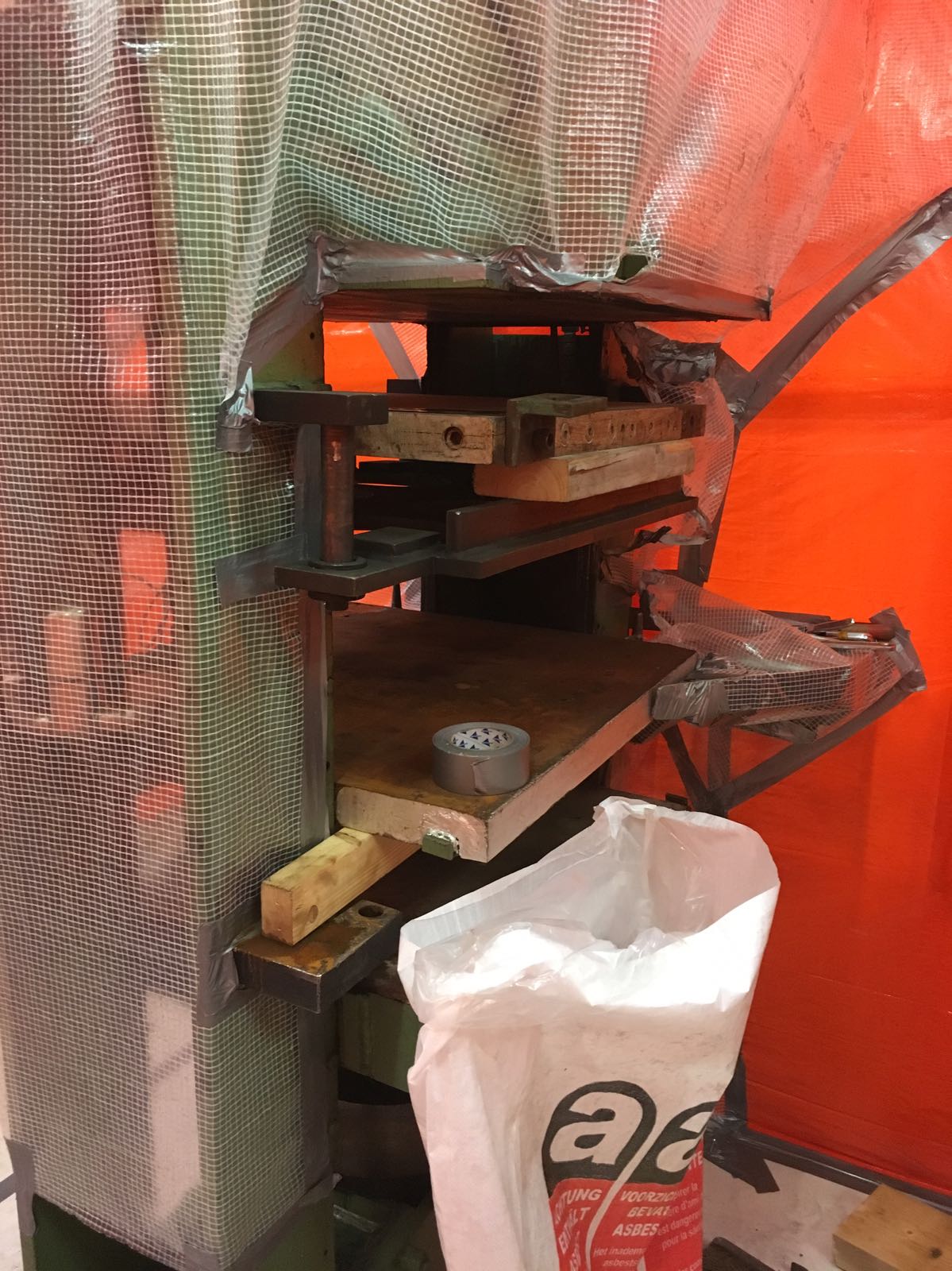 De drukpersen in deze fabriek in Lelystad zijn weer veilig. Het asbest is zorgvuldig verwijderd uit de drukpersen.