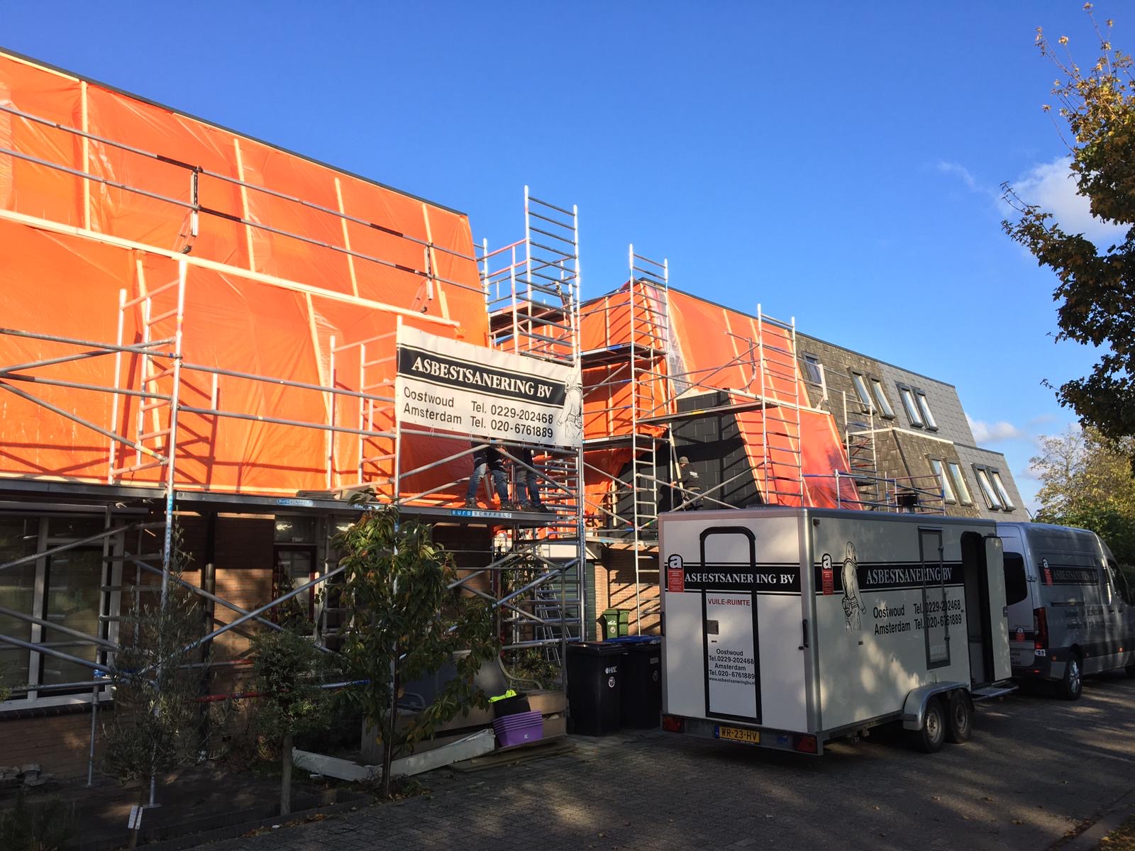 In Lelystad zijn de woningen uit de jaren 80 vaak bedekt met asbesthoudende dakleien. Voor het vervangen van de leien worden deze door ons zorgvuldig verwijderd en verpakt. Het dak wordt schoongemaakt/gezogen en vrijgegeven. Vervolgens wordt het dak meteen door onze medewerkers afgezeild om eventuele lekkage te voorkomen. Zo kan de dakdekker weer veilig en snel aan de gang.